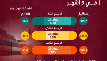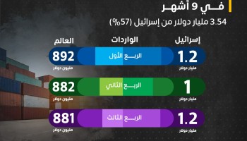 1.2 مليار دولار قيمة الصادرات الفلسطينية في 9 أشهر معظمها إلى إسرائيل