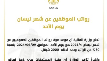 الحكومة دفعت 1.3 مليار شيكل على بند الرواتب والأجور في الربع الأول