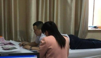 طبيب صيني يستقبل مرضاه وهو مستلقٍ على بطنه