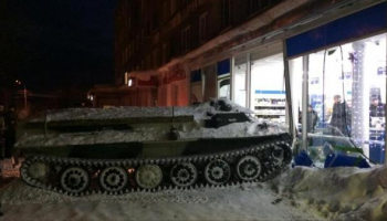 شاهد .. سرق دبابة للسطو على أحد المتاجر