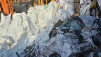 شاهد سيارة تتحول إلى صفيحة بسبب شاحنة ثقيلة