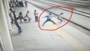 شاهد .. شاب يمنع فتاة من الانتحار أمام قطار فى اللحظات الأخيرة