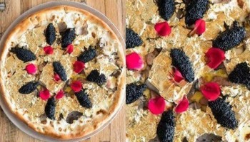 فيديو .. أغلى بيتزا.. العجينة سوداء والمكونات شرائح الذهب