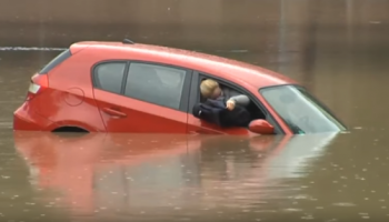فيديو.. امرأة تخرج من سيارتها الغارقة.. فهل نجحت قبل فوات الأوان