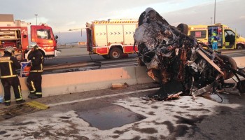 فيديو.. لحظة احتراق 3 شاحنات وسيارة على طريق سريع