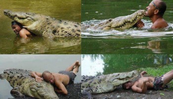 صداقة من نوع اخر مع هذا التسماح المفترس .. كيف ياكل وكيف ينام .. شاهد