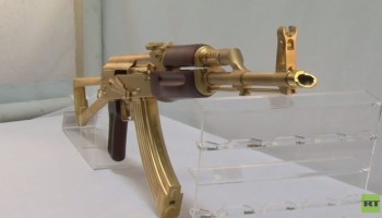شاهد .. معرض يقوم بعرض رشاش كلاشنكوف مصفح بالذهب