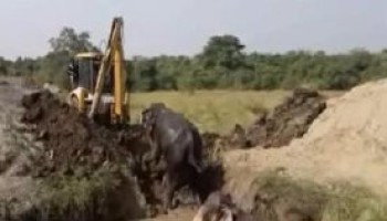 شاهد.. انقاذ 4 افيال من حفرة ضخمة مليئة بالمياه