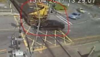 فيديو.. كاميرا مراقبة ترصد لحظة اصطدام سيارة بقطار بضائع