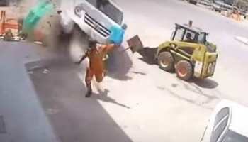 فيديو مروع.. عامل ينجو بأعجوبة من سيارة انقضت عليه