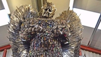 فيديو: فنان يصنع تمثالاً من 100 ألف سلاح أبيض