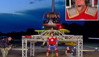 شاهد .. رجل يحمل طائرة حوامة ضخمة على كتفيه