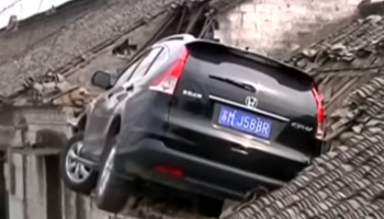 شاهد كيف استقرت هذه السيارة على سقف احد المنازل