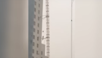 شاهد لحظة سقوط رافعة عملاقة في الشارع بالصين