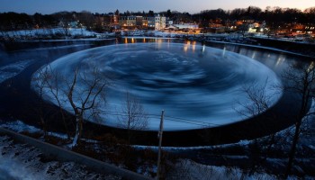 مشهد مثير.. قرص ثلجي عملاق يدور باتجاه عقارب الساعة