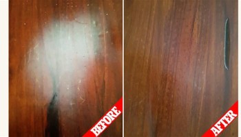 صور... طريقة فعالة وبسيطة لتنظيف حروق الخشب باستخدام المكواة والمايونيز!