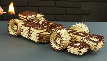 شاهد إشعال سيارة سباق بعد صنعها من عيدان الثقاب