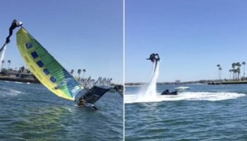 فيديو مدهش لمغامر ينقذ قارب انقلب في المياه