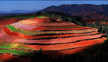 فيديو.. مشاهد مذهلة من المدرجات الأرضية الحمراء جنوب الصين