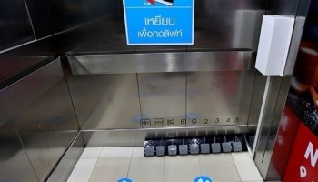 مصعد تايلاندي بدواسات بدلاً من الأزرار لتجنب الإصابة بكورونا