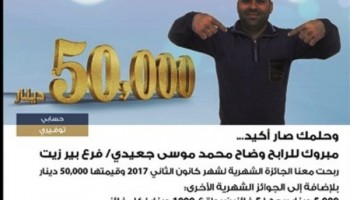 بنك الإسكان يعلن عن الرابح بجائزة ال 50 ألف دينار