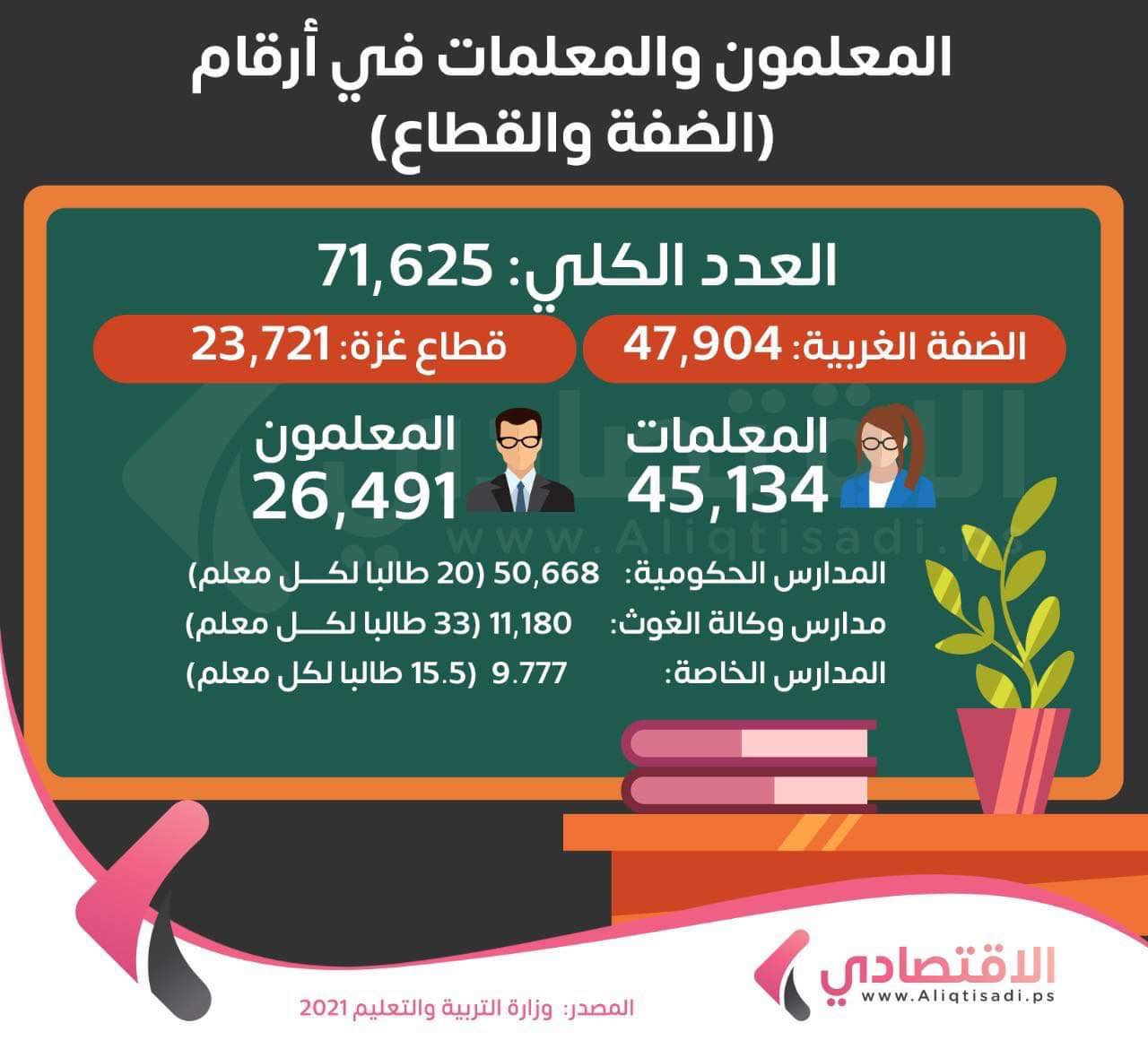 تعرف على أعداد المعلمين والطلبة والمدارس في الضفة والقطاع