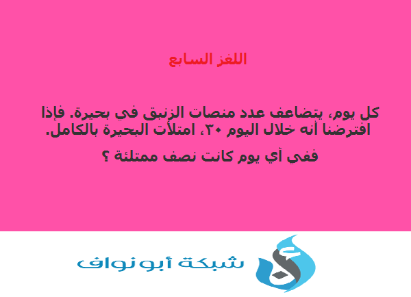 حل اللغز السابع: في اليوم 29. لأن العدد يتضاعف كل يوم.