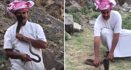 وأظهر الفيديو تقبيل السعودي لرأس الأفعى، وقد قام بإحكام قبضته على رقبتها حتى لا تصيبه بلدغاتها القاتلة.