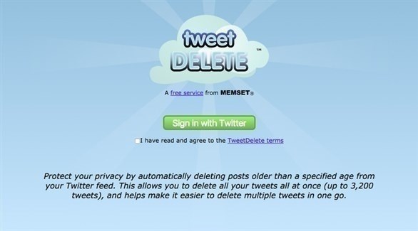 تتيح خدمة "TweetDelete" المجانية حذف 3200 تغريدة على دفعات، بعد توزيع التغريدات وتعيين أوقات محددة، فإذا غرد المستخدم 15 ألف مرة، فهو بحاجة إلى استخدام الخدمة 5 مرات، وتتم العملية بسلاسة، وتحذف التغريدات وفق الفترة الزمنية المحددة مسبقاً من قبل المستخدم، وبالإمكان حذف الجدولة بإلغاء "Activate Tweetedelete".