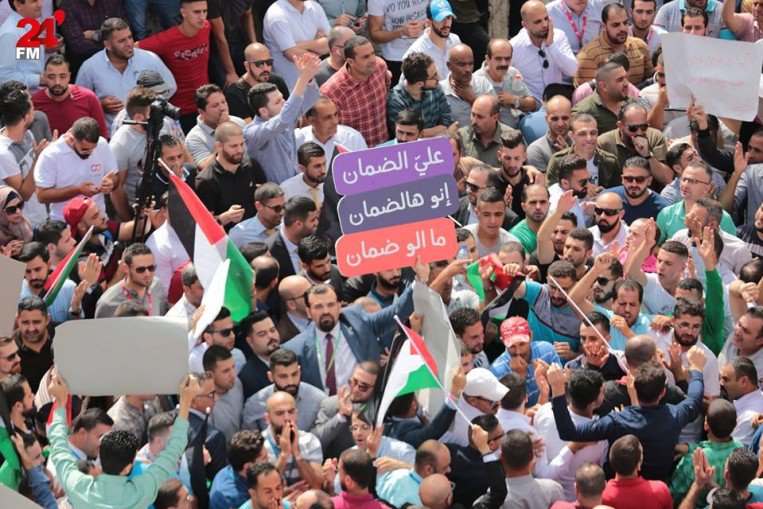 وقال مسؤول في الحراك، خلال مظاهرة احتجاجية، أمس الإثنين، في رام الله، إنه قد يتم تنفيذ إضراب شامل الخميس المقبل، في حال عدم تعديل بنود الخلاف على الضمان الاجتماعي.