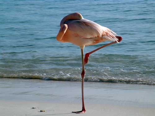 يبدو أن الهيكل العظمي لطيور الفلامينغو هو المفتاح، حيث إن طيور الفلامينغو مفصلان رئيسيان على سيقانها مثلما لدى الإنسان. لكن ما تراه ينثني إلى الخلف في ساق الفلامينغو ليس ركبة الساق، بل كاحلها، أما ركبة الطائر فمختبئة ضمن قسمات جسم الطير في الجزء الأسمن من جسمه.