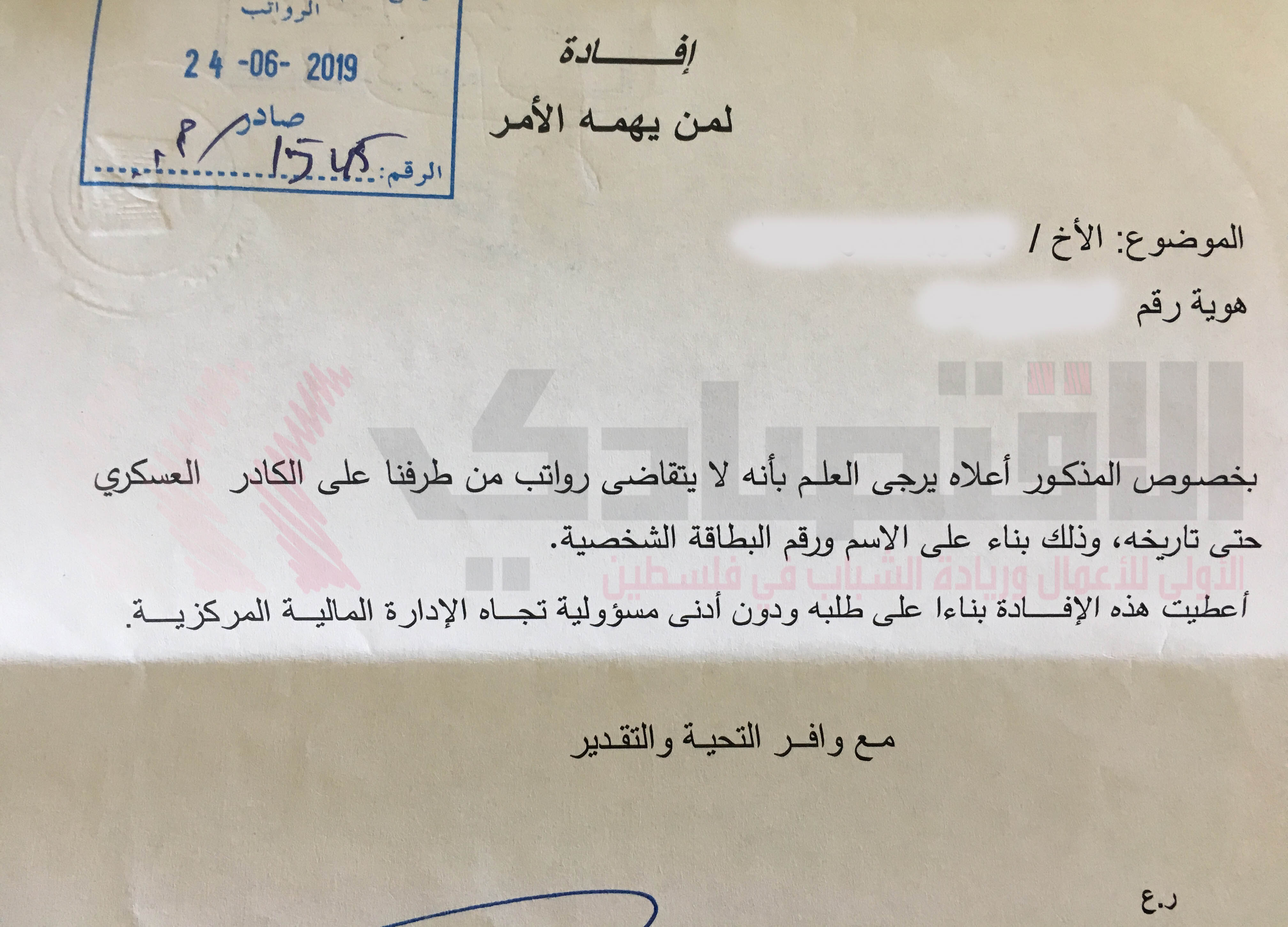 كما يتوجب على صاحب "جواز السفر الدائم"، الحصول على ورقة من وزارة المالية تثبت أنه ليس موظفا في القطاع الحكومي الفلسطينية، ومصدقة من وزارة الخارجية.