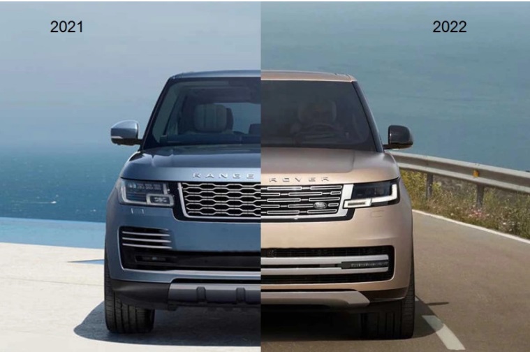 هذه المصابيح في نسخة عام 2022 تتصل ايضاً بخط أسود اللون تتوسطه عبارة Range Rover. أما نسخة العام 2021 فمصابيحها أكبر ولا تتميز بهذا الخط الفقي الأسود بالرغم من تواجد لكلمتي Range Rover. هذا ونستطيع أن نلاحظ أيضاً بأن التصميم الخلفي كالتصميم الأمامي بات أكثر بساطة في سيارة العام 2022، إلا أن هذه البساطة جاءت فخمة إلى أقصى الحدود.
