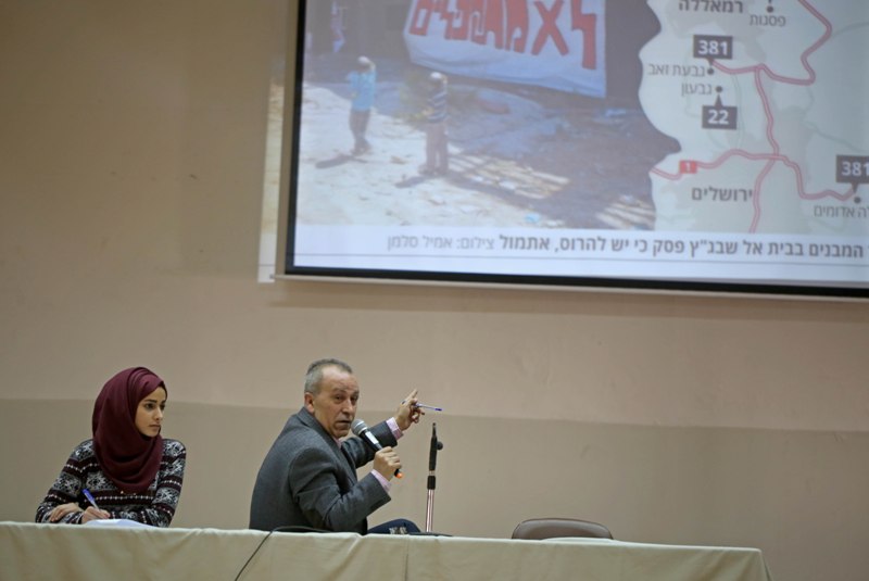وأكد مدير مركز القدس للمساعدات القانونية عصام عاروري، أن اسرائيل تمارس اليوم سياسات تطهير جماعية بحق الفلسطينيين لا سيما في مناطق (ج) ومنطقة القدس، التي ستعيق مساعي بناء دولة فلسطينية مستقلة بناءً على حل الدولتين. وبّين عاروري أن هذه السياسات الاستيطانية والعنصرية تتوغل في كل مكان من الأراضي الفلسطينية، حيث تمنع اسرائيل المواطنين الذين يعيشون في منطقة (ج) من منحهم تراخيص للبناء، كما قامت بتهجير أكثر من 400 عائلة وهدمت أكثر من 241 منزلا في تلك المنطقة منذ بداية عام 2016 حتى 20 شباط الماضي، كما أقرت عدداً من التشريعات العنصرية من أهمها قانون التفتيش العاري وقانون منع رفع الأذان.