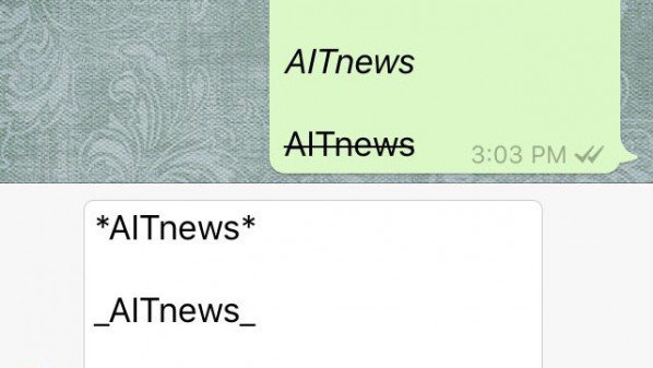 يتم الأمر ببساطة عن طريق كتابة رمز * قبل وبعد الكلمة المطلوب كتابتها بالخط العريض ليصبح الأمر مثل *AITnews* أو كتابة رمز _ قبل وبعد الكلمة المطلوب كتبتها بالخط المائل لتصبح مثل _AITnews_، ويمكن وضع سطر بمنتصف الكلمة عن طريق كتابة رمز ~ قبل وبعد الكلمة لتصبح ~AITnews~.