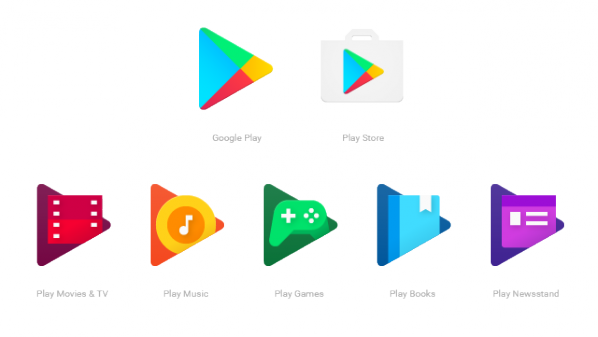 وتتضمن التطبيقات التي حصلت على الأيقونات الجديدة كلًا من تطبيق مُشاهدة الفيديو Play Movies & TV وتطبيق الموسيقا Play Music وتطبيق الألعاب Play Games وتطبيق الكتب الإلكترونية Play Books، وأخيرًا تطبيق الأخبار Play Newsstand.