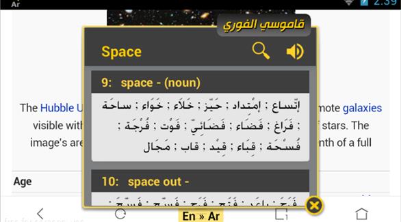 ما يميز التطبيق هي إتاحته ترجمة النصوص الإنجليزية والفرنسية إلى العربية، دون الحاجة لإغلاق التطبيق الحالي، حيث تتم الترجمة بمجرد تحديد الكلمة أو النص المراد ترجمته وإجراء عملية نسخ حيث لتظهر مباشرةً نافذة منبثقة بالمعاني المقترحة للمفردات المنسوخة. وبذلك توفر هذه الأداة الوقت والجهد للدارسين والقارئين للكتب الإلكترونية أو المناهج الدراسية أو عند تصفح مواقع الإنترنت.