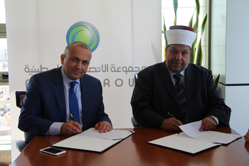 رام الله - الاقتصادي - وقعت مجموعة الاتصالات الفلسطينية ووزارة الاوقاف والشؤون الدينية اتفاقية تعاون ترعى بموجبها مجموعة الاتصالات مؤتمر بيت المقدس الاسلامي السابع والذي يندرج هذا العام تحت عنوان " الزكاة عبادة وعدالة وتنمية"، حيث وقع الاتفاقية وزيرالاوقاف والشؤون الدينية سماحة الشيخ يوسف ادعيس والرئيس التنفيذي لمجموعة الاتصالات الفلسطينية عمار العكر بحضور حسام ابوالرب الوكيل المساعد وجمال قاسم الوكيل المساعد للشؤون الادارية والمالية في وزارة الاوقاف ، ومدراء عامين وزارة الاوقاف بالاضافة الى مدراء من مجموعة الاتصالات الفلسطينية وُوقعت الاتفاقية في مقر المجموعة.