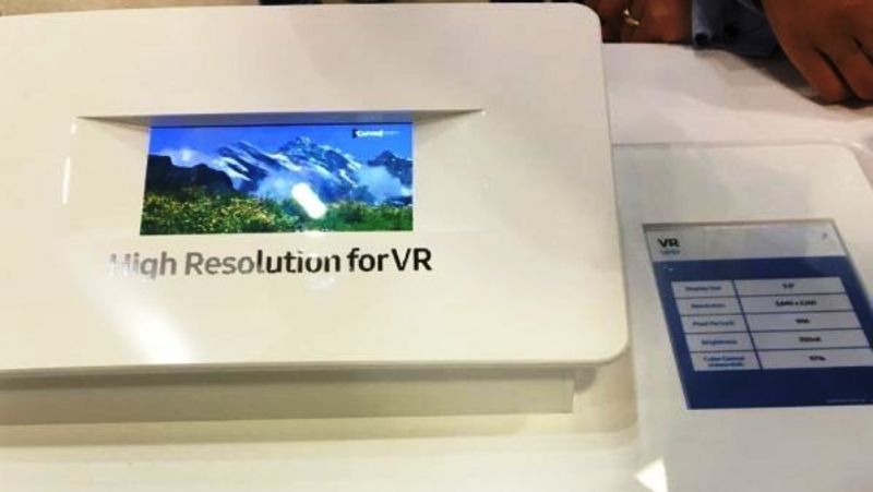 وقد عرضت سامسونج شاشتها ذات المقاس 5.5 بوصات وبدقة 3840×2160 بكسلًا، وقد كُتب تحتها عبارة “دقة عالية للواقع الافتراضي”، وهي تمتاز بأنه تقدم 806 بكسلات في البوصة الواحدة.