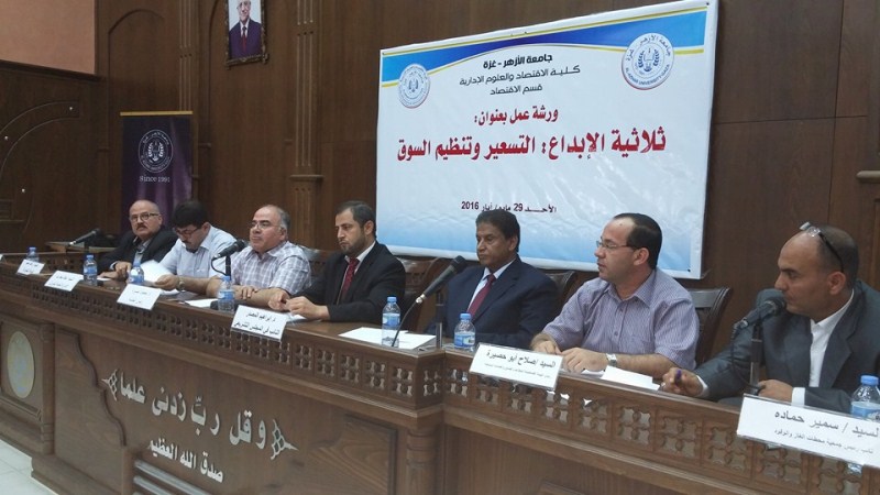الاقتصادي - غزة - نظم طلاب برنامج ماجستير الاقتصاد بكلية الاقتصاد و العلوم الإدارية بجامعة الأزهر ورشة عمل بعنوان " ثلاثية الإبداع : التسعير و توازن السوق " و ذلك يوم الأحد الموافق 26 مايو بقاعة هاني الشوا للمؤتمرات بالحرم الجامعي و تحت إشراف الدكتور محمود صبرة عضو الأستاذ المشاركة بقسم الاقتصاد بالجامعة.