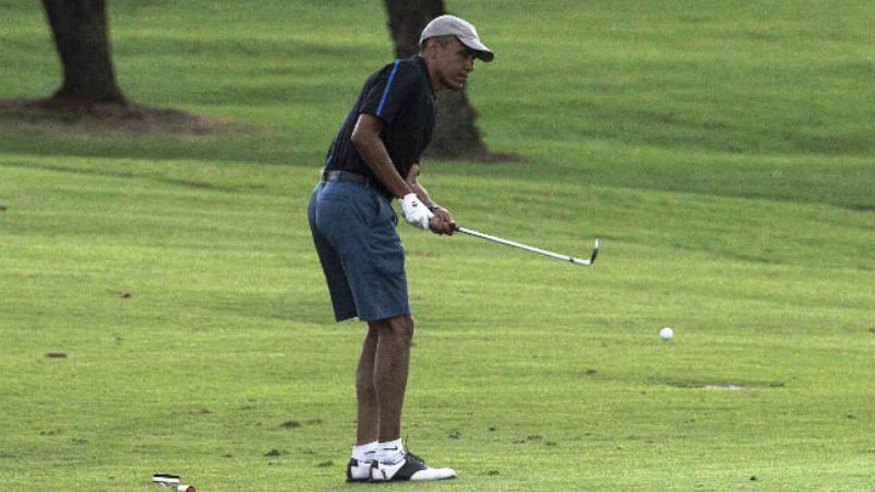 - الرئيس الأمريكي باراك أوباما يلعب الغولف.
