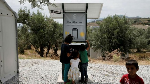 صمم فريق من طلاب جامعة أدنبرة البريطانية محطة شحن للهواتف المحمولة تعمل بالطاقة الشمسية، ويهدف الفريق من وراء التصميم إلى خدمة اللاجئين والمهاجرين العالقين في اليونان لشحن بطاريات هواتفهم الذكية التي تمثل شريان الحياة بالنسبة لهم.