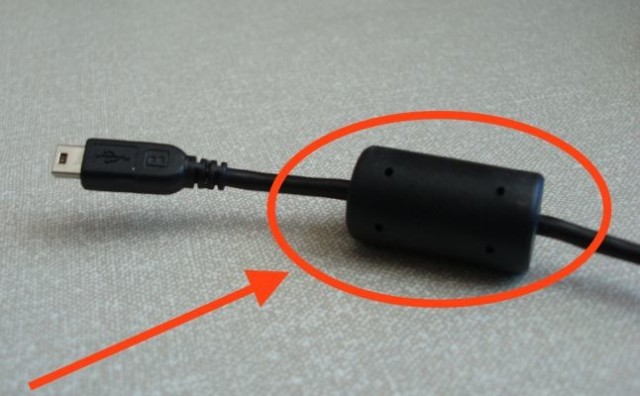 ان القطعة الأسطوانية السوداء الموجودة في أسلاك أجهزة الشحن وأجهزة الكومبيوتر المحمولة وغيرها من الأسلاك تسمى Ferrite bead أو حبة الفرايت، في داخلها رقاقة معدنية سوداء شبه مغناطيسية مصنوعة من مادة الفرايت والمكونة بدورها من مجموعة معادن.