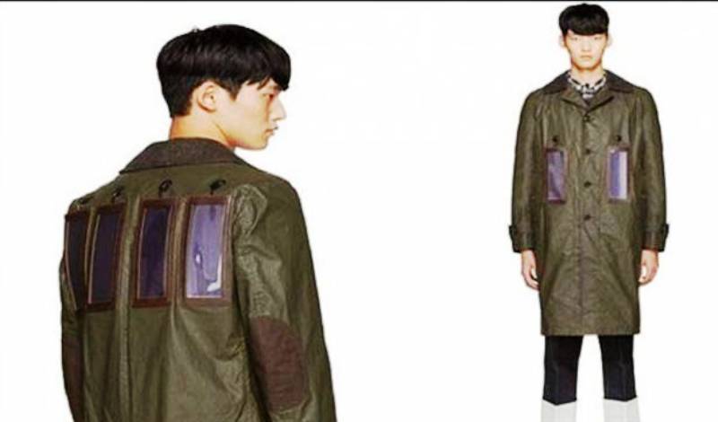 ،المعروف بأفكاره الجذرية ،معطفاً يحمل أربع لوحات شمسية من الخلف واثنتين من الأمام ويحتوي علىJUNY WATANBEوقد صمم حزمة للطاقة، مجهزة لتحويل الطاقة الشمسية إلى كهربائية، تمكن من شحن الهاتف بطريقة فعالة للغاية وفي حين تبدو اللوحات على المعطف ظاهرة، بذل المصمم قصارى جهده لإعطاء المعطف لمسة فريدة وكلاسيكية من خلال تغطية أطراف اللوحات بقطع من الجلد المزيف.
