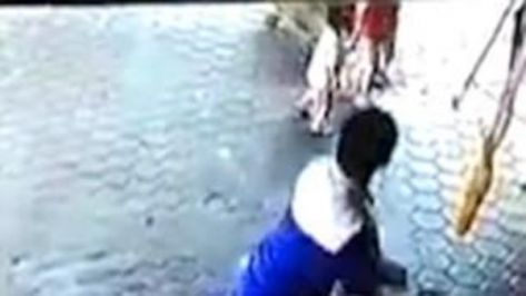 ويبدو أن الرجل انشغل عن أولاده أثناء عمله، عندما عبر الطفلان الرصيف، ليلتفت فجأة باتجاههما.