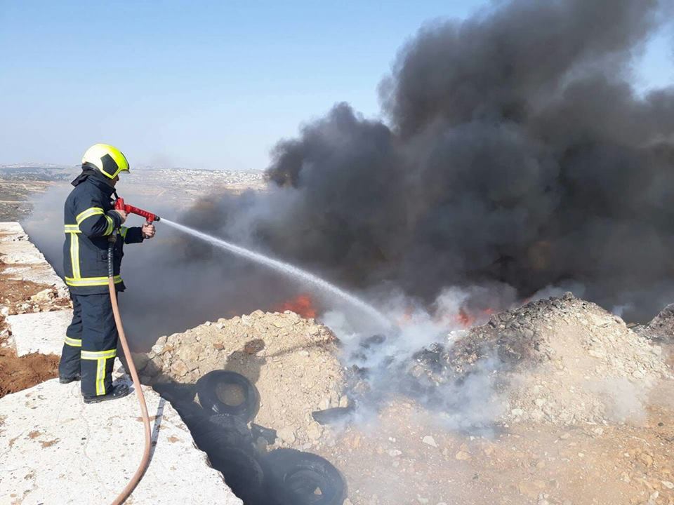 وإطفاء حريق مواد بلاستيكية ولفات نايلون في أحد الحقول بمدينة طولكرم .