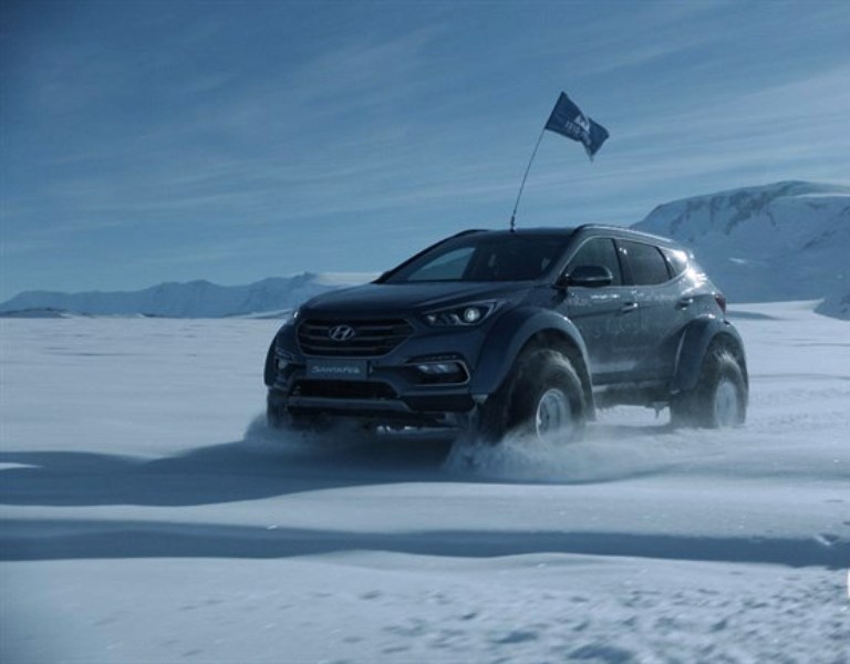 وشهدت الحملة التي استمرت 30 يوماً قيام سيارة من طراز سنتافي، التي يتم إنتاجها على نطاق تجاري واسع، وبعد أن خضعت لتعديلات طفيفة جعلتها تتناسب مع إطارات عملاقة ذات ضغط منخفض، بقطع مسافة تقرب من 5,800 كيلومتر من التضاريس الجليدية في ظروف بالغة الصعوبة؛ إذ كان على المركبة قطع مسافات كبيرة في درجات حرارة شديدة الانخفاض تتدنى إلى 28 درجة مئوية تحت الصفر، علاوة على رسم مسارات جديدة على قطع جليد عائمة لم يسبق لأحد من قبل أن عبرها على متن مركبة ذات عجلات.