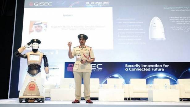 وأضاف خلال تقديم الشرطي الذكي في معرض ومؤتمر الخليج لأمن المعلومات "جيسك"، أن الشرطي الآلي الذكي يبلغ طوله 170 سنتمترا، ووزنه 100 كيلوغرام، ومزود بنظام ذكاء اصطناعي، وقدرة تعرّف على الإيماءات وإشارات اليد عن بعد يصل حتى 1.5 متر، تماما مثل رجل الشرطة البشري.