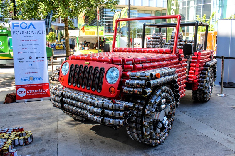 السيارة المصنوعة بالكامل "تقريبا" من الطعام المعلب تم عرضها للجمهور في وسط فانكوفر، ومن هناك سيتم نقلها وتفكيكها لتقدم ما مقداره 3120 وجبة طعام إلى جمعية بنك الطعام الكندي كجزء من خطة المسؤولية والمساهمة المجتمعية لشركة فيات-كرايسلر.