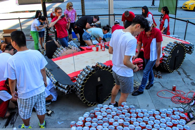 طلاب المدارس الذين  تتراوح اعمارهم ما بين 12 و 18 عاما شاركوا في بناء جيب رانجلر فريدة من نوعها، وذلك باستخدام علب الطعام المعلب مع هياكل بسيطة من المعدن مستخدمين ما مجموعه 4500 علبة طعام استغرق تركيبها وتنظيمها بهذا الشكل قرابة 12 ساعة.